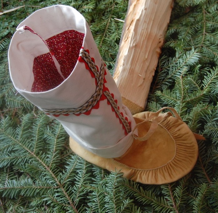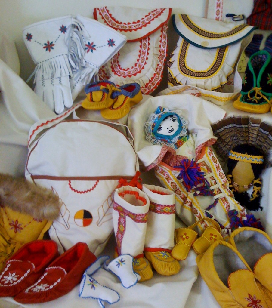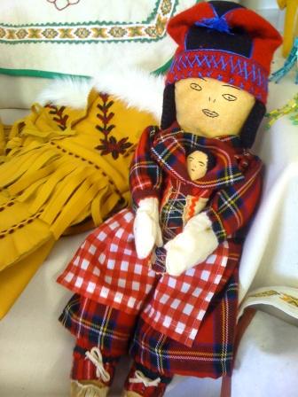 The Innu Tea Doll is one of the best known traditional crafts. When the Innu were a nomadic people the women made tea dolls for a dual purpose; to store their tea and to double as toys for their children who accompanied them on the hunt. Caribou were the life blood of their culture – they ate the meat and made clothing and other useful things from the hides such as slippers and gloves. Now that caribou is not so readily available they have substituted caribou with heavy canvas and other leather hides.