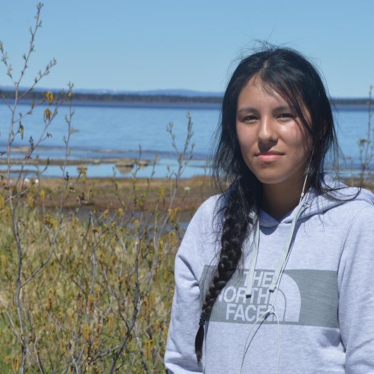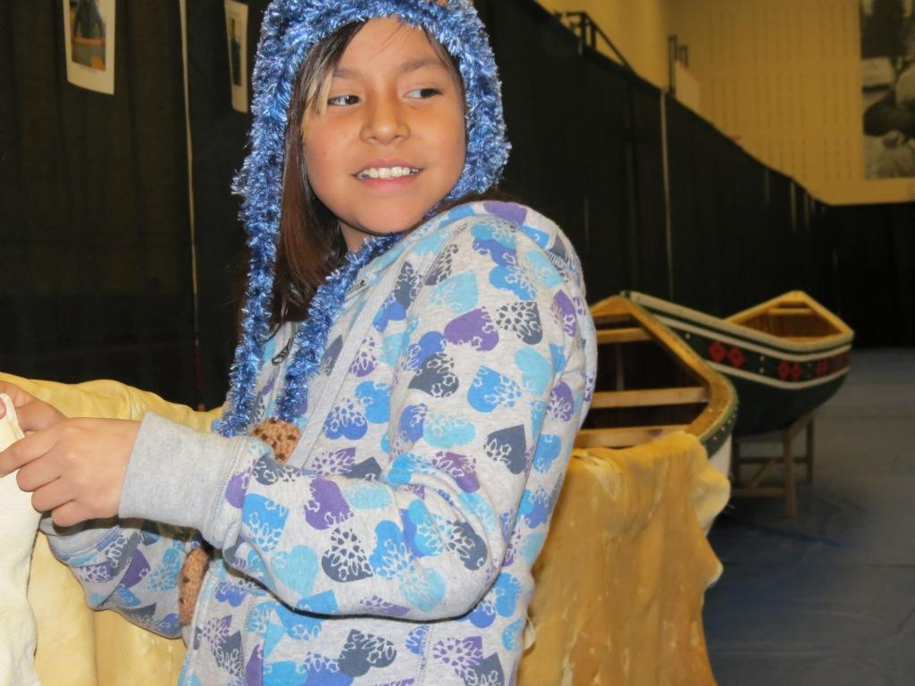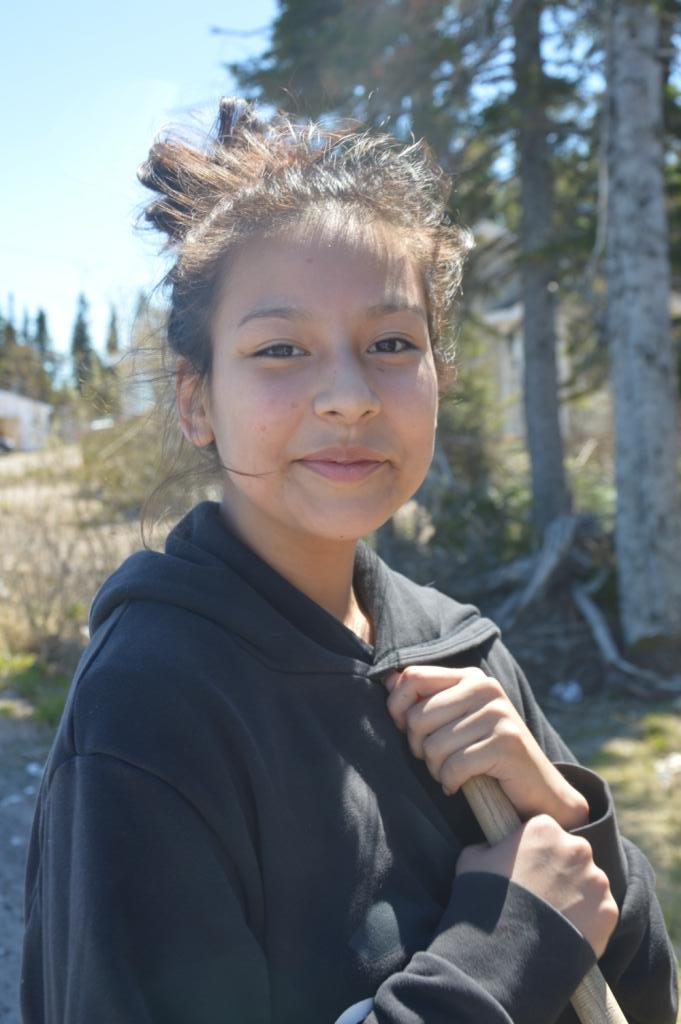 Edna Pone is an artist who was born in SIFN and raised by her grandparents. Her grandfather taught her and her brother how to build canoes, string snowshoes and prepare Caribou hides. For the past 20 years Edna has been making crafts, most notably her miniature displays of Innu life. They appear at the School and at the offices of IDLP and the Finance building where she also works as a caretaker.