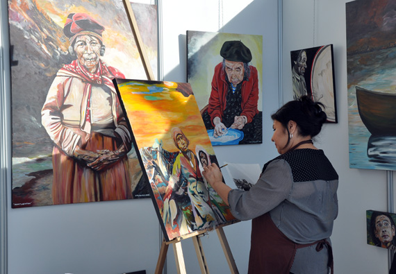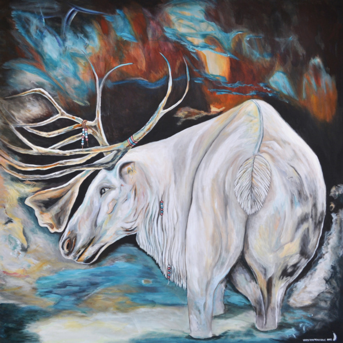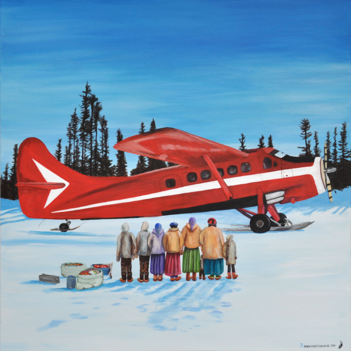 Born and raised in Labrador, Mary Ann Penashue is celebrated as Sheshatshiu’s leading visual artist. A master of modern colour and technique she has married it with traditional images that depict the life and ways of the Innu. Mary Ann won numerous awards and commissions including “Emerging Artist of the Year” in 2007 from the Newfoundland and Labrador Arts Council. In 2011 she enrolled at the Ottawa School of Fine Art from where she graduated in 2016. Her work lives in collections and with aboriginal organizations throughout Labrador and Quebec. Among her vast body of work are over 500 portraits of the Tshenut (Elders). Mary Ann resides in Sheshatshiu with her husband Peter and their children and grandchildren.